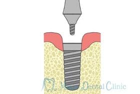 歯ぐきを切開し、顎の骨にインプラントを埋入。数カ月かけて骨と結合させます。