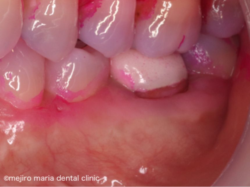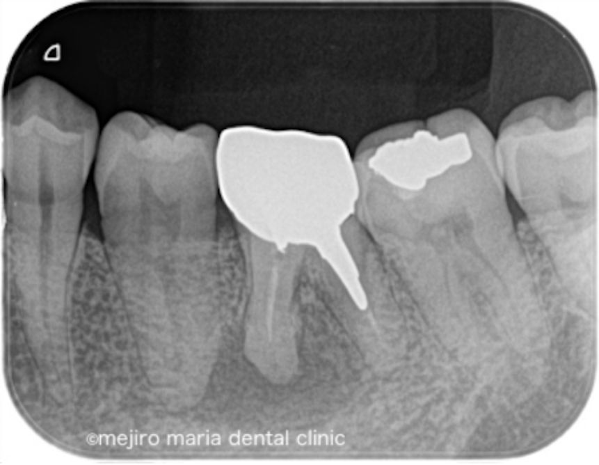 術後3ヶ月の経過観察では、歯肉の腫れや噛んだときの違和感、痛みは消失し予後良好と判断しました。引き続き最終補綴処置(被せ物)の製作を行い2年間の経過観察に移行することとなりました。