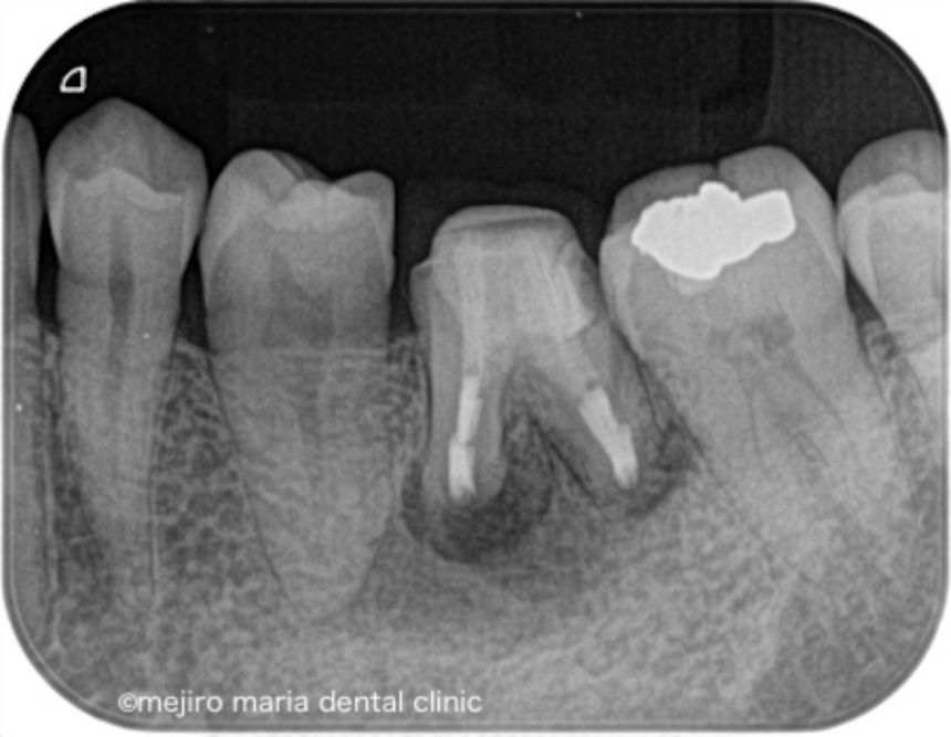 当院を受診する前にも根管治療を行なっている歯科医院を受診するも、抜歯しインプラントを勧められたとのことでした。当院の診査では抜歯をするほどの所見は確認できず、通常通りの精密根管治療を行うことをご提案させていただきました。